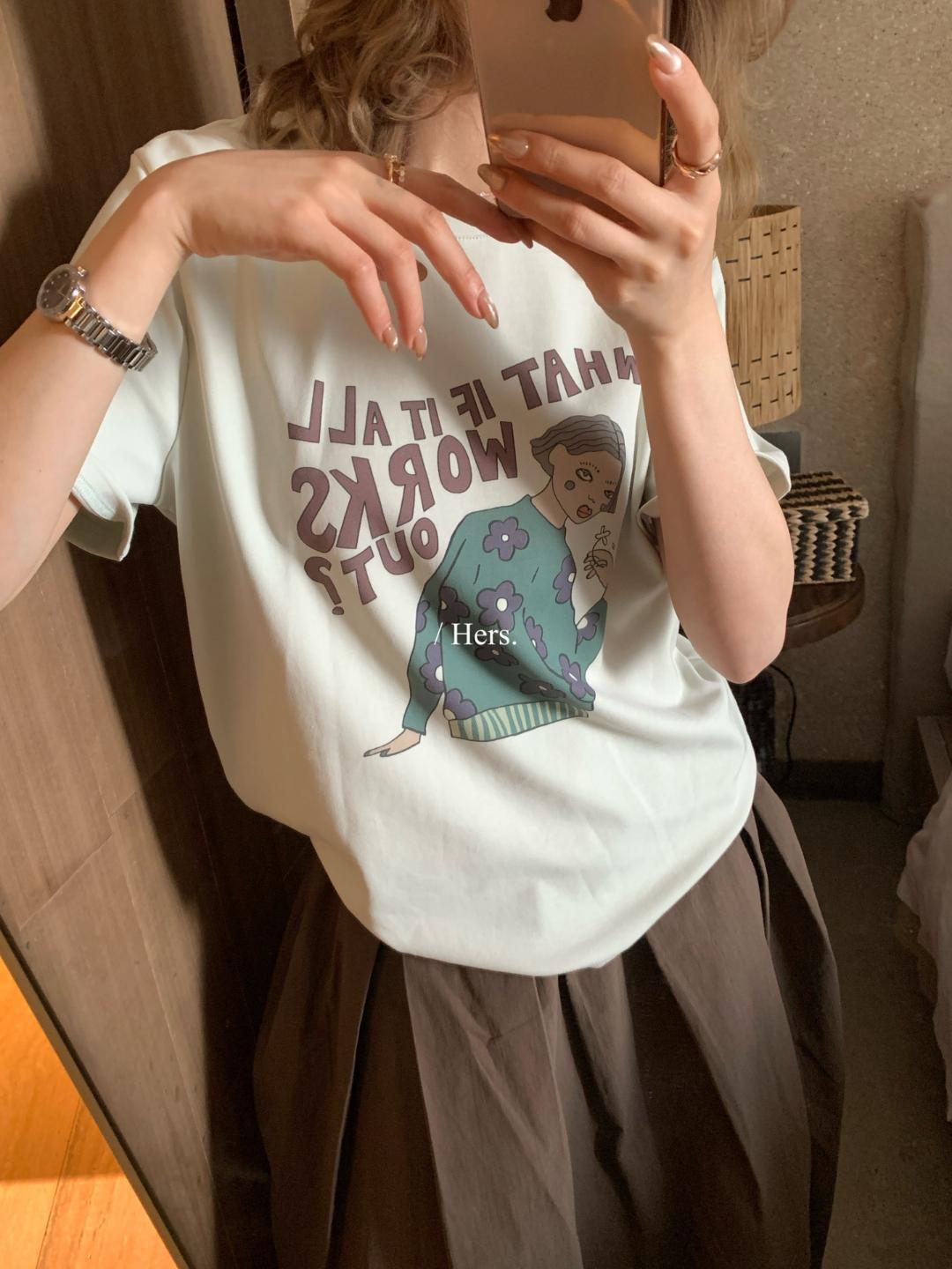簡約做舊字母印花美式竹節棉上衣-2色