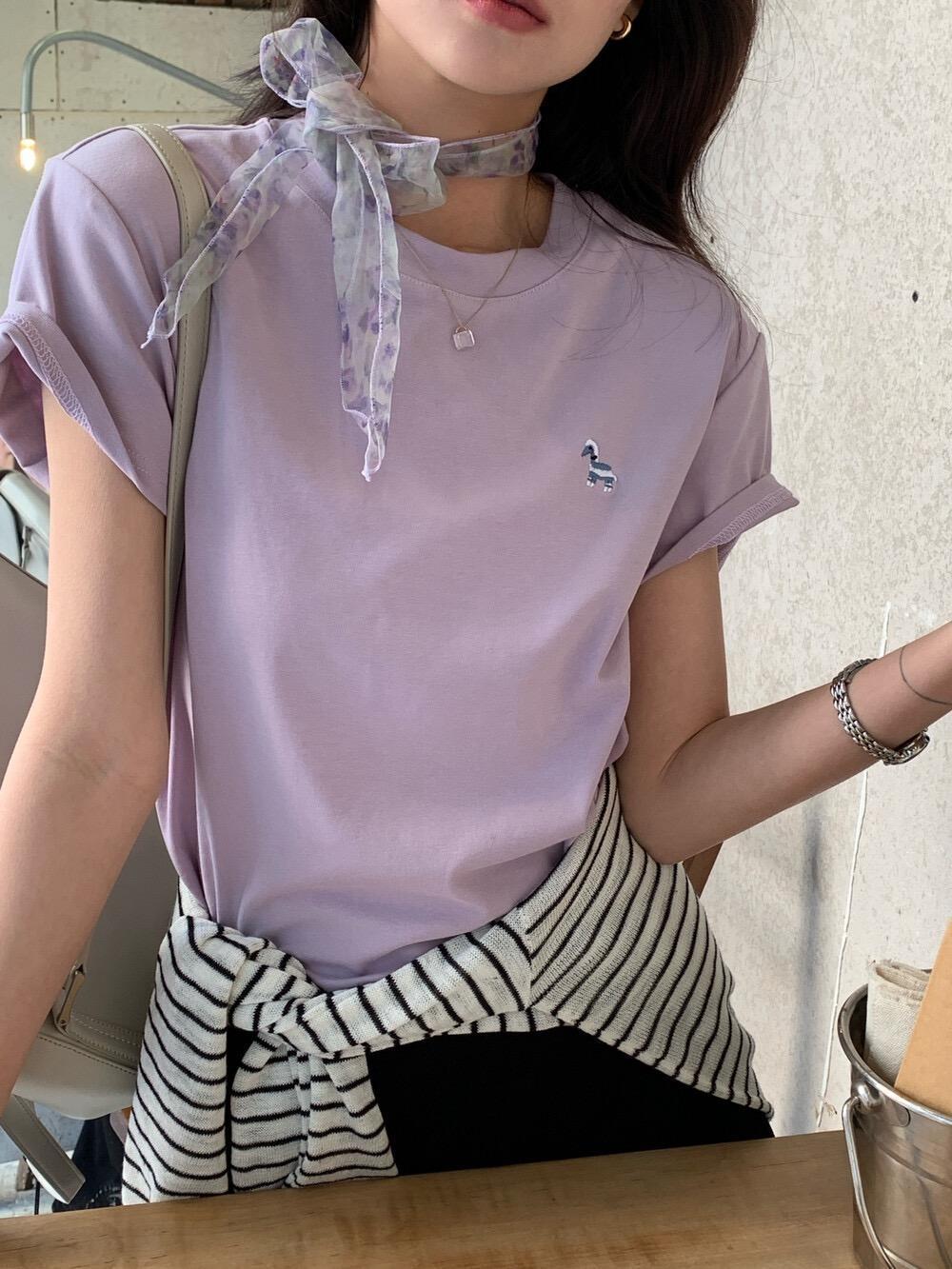 韓系撞色字母刺繡針織上衣-2色