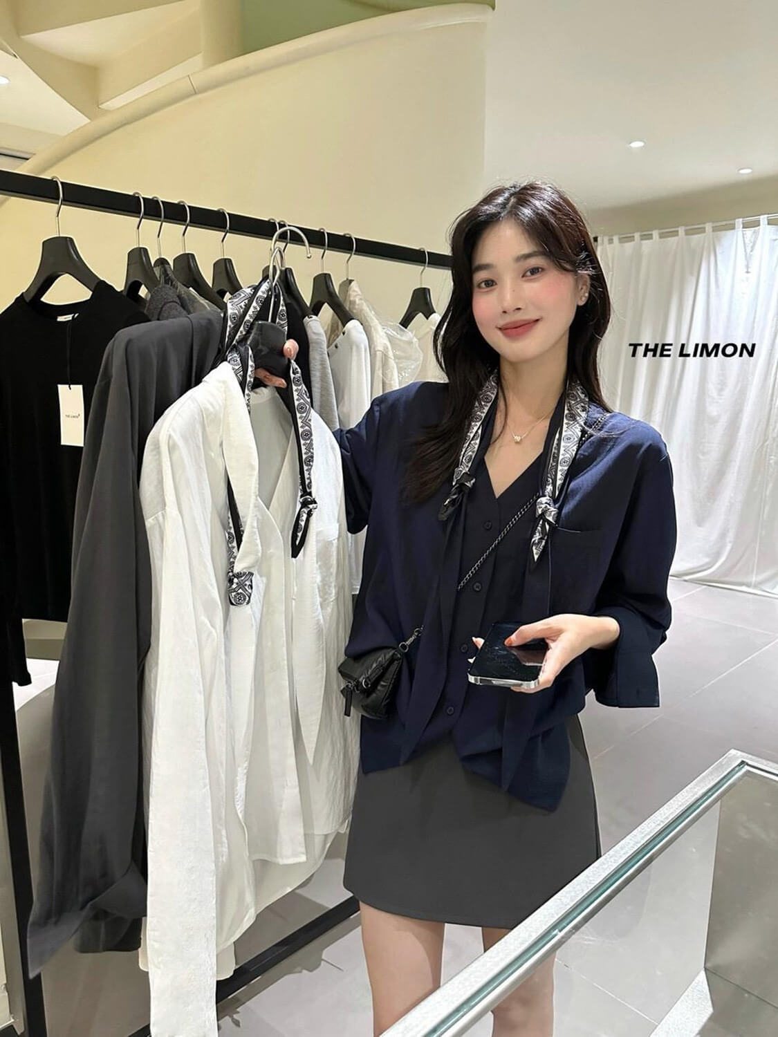 百搭寬鬆燈籠袖襯衫+針織背心-2色